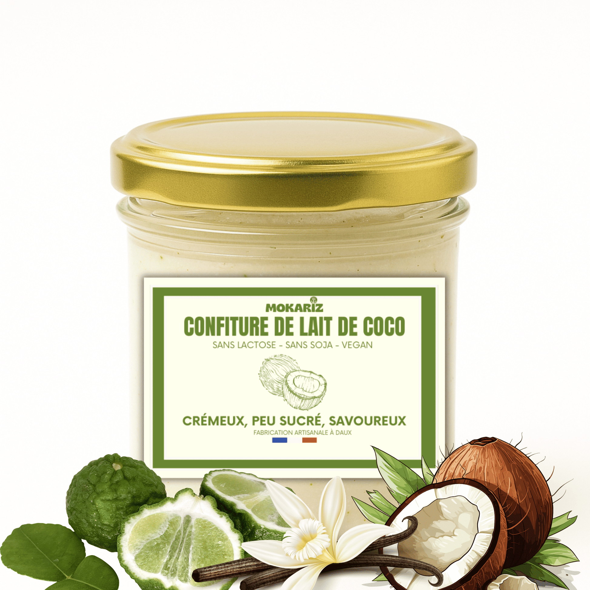 Créée à partir de lait de coco lentement réduit, relevée du parfum racé du combava et équilibrée par la fraîcheur acidulée du citron vert, cette confiture est plus qu’un simple tartinable : c’est une expérience.